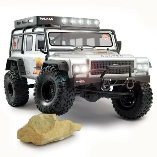 The Kanyon’s off road inspired semi-scale bodyshell features a number of additional moulded accessories such as wheel arches, luggage tray, roll cage, front grill and head, tail, spotlights. The aluminium front and rear bumper and body mounts provide a wide selection of optional positioning for possible aftermarket options and to wrap things up 13 factory installed LED lamps provide the necessary illumination for you to keep your rig on the trail long after the sun goes down.