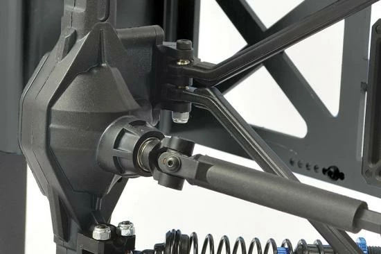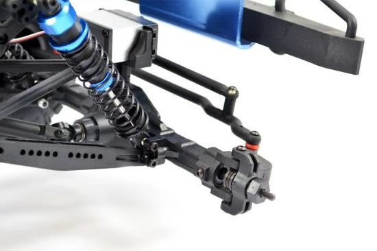 The high torque 60T brushed motor drives a rugged, all metal output pinion, crown and transmission gears for extra reliability. Front universal CVA driveshafts and centre telescopic sliding shafts keep the power connected to all wheels through high clearance front and rear locked axles.