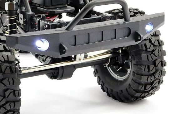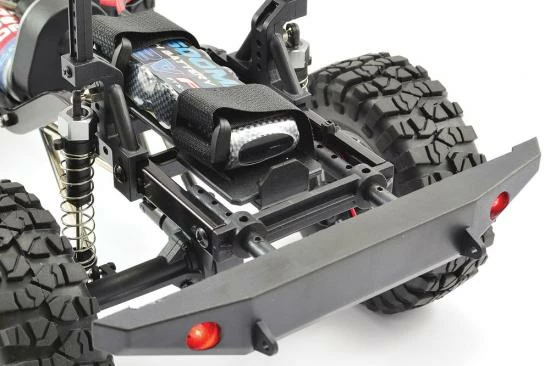 New updated front and rear axle housings have been widened increasing the track width by 15mm for an improved handling and reduced wheel scrub. A higher torque and larger 390 size brushed motor now handles the power, while new 4-point nickel-plated suspension and steering links provide more precise articulation and steering. The oil filled shock absorbers have now been moved outboard for more scale realism and handling improvements. A new servo mount from aluminium provides scope for different servo options.