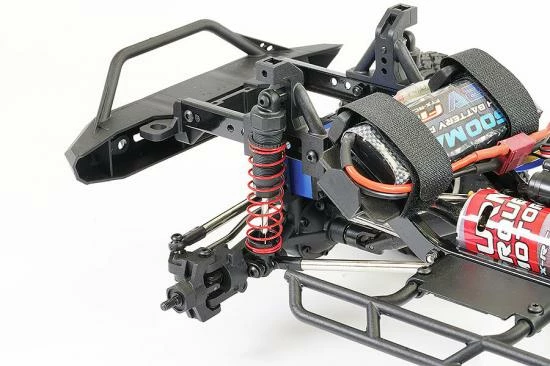 A powerful Etronix 6kg steering servo, along with an improved 45° steering angle, paired with adjustable front caster angle provides exceptional manoeuvrability in tight spaces. The 1500mAh battery has been moved forward for improved stability, while the oill filled shock absorbers now feature threaded bodies for fine tuning adjustment.