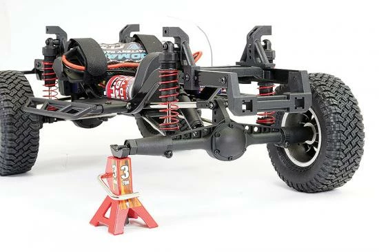 Updated locked front and rear axles feature a scale removable cover for access the metal drive spool and crown gear, while side chassis rock sliders help those annoying snags.