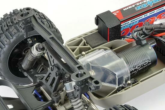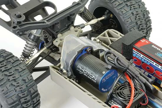 The Hobbywing brushless speed control and 2500kv motor, coupled with the supplied 3S 3500mAh Lipo battery provides amazing speed for a super driving experience from a model of this size via the 4WD shaft design and front and rear metal geared differentials.